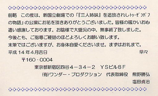 舞台のお礼 投稿者:ワンダープロ 投稿日: 4月18日(木)16時05分34秒